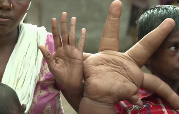 Eight-year-old Kaleem has always been bullied because of his gigantic hands. Each hand weighs more than 8kgs and is over 13 inches long.