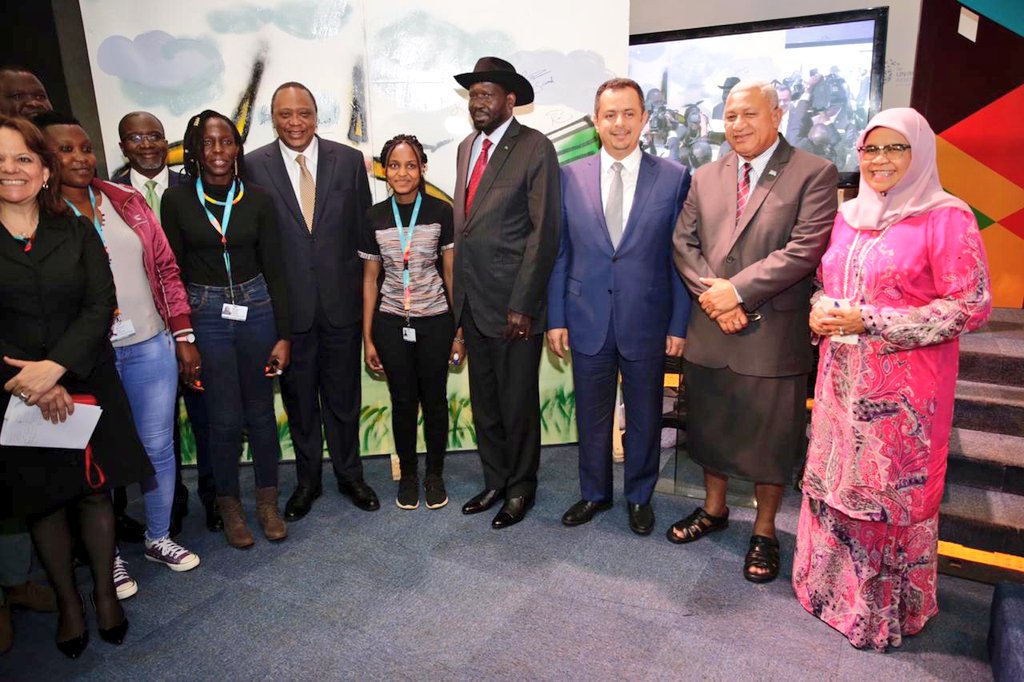 The discussion presidents Kenyatta, Salva Kiir (South Sudan), prime minister Josai Vorege Bainimarama (Fiji) and Maeen Abdulmalik Saeed (Yemen) as well as the Executive Director of UNHabitat and the President of the UN-Habitat Assembly Maimunah Sharif.